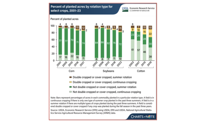 The last two decades have seen a significant increase in farmers using either double cropping or cover cropping on corn, soybean, and cotton fields. Double cropping is the practice of planting a crop in the fall between summer crops (such as planting winter wheat after corn has been harvested or planting soybeans following a winter wheat harvest) to increase the productive value of a single field.
